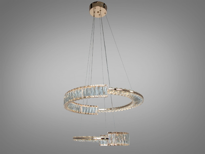 Світлодіодна люстра підвісна LED золото 103 Вт два кільця з кришталем