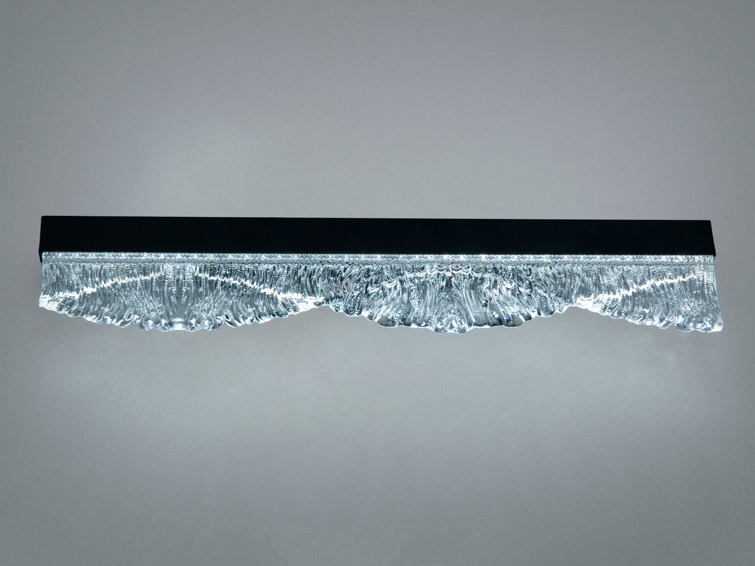 Настінний LED світильник бра-планка потужністю 20 Вт у чорному кольорі створений для сучасних інтер′єрів, де важлива лаконічність і стиль. Лінійний корпус із хвилястим рельєфним скляним дифузором формує м′яке, рівномірне світло, що нагадує водоспад. Це забезпечує комфортне підсвічування без різких тіней та сліпіння.