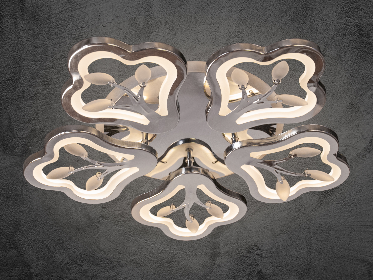 Стельова LED люстра хром 135 Вт 5 світлових модулів пульт керування