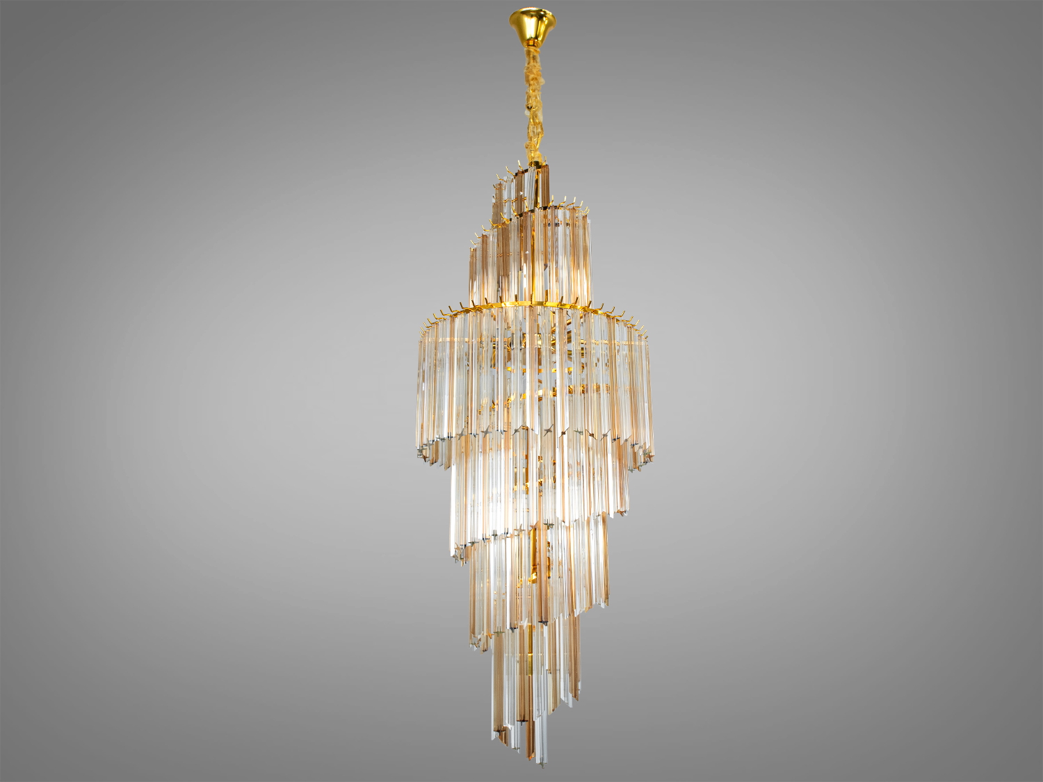 Сучасна кришталева каскадна люстра для високих стель ідеально підходить для використання в холах або вітальнях, сходових зонах приватних будинків, ресторанів або готелях. Кришталеві підвіски, виконані у правильній формі, створюють захоплюючий світловий ефект, граючи на світлі.