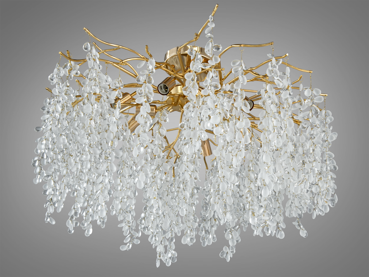 Кожен кришталь цієї люстри, відрізняючись формою і розміром, вловлює світло і розсіює його на всі боки, створюючи ілюзію природного водоспаду, що м'яко висвітлює простір. Особливість цієї моделі – у її здатності відтворювати дивовижну гру світла, що змінюється з кожним кутом зору, надаючи інтер'єру динамічність та жвавість.