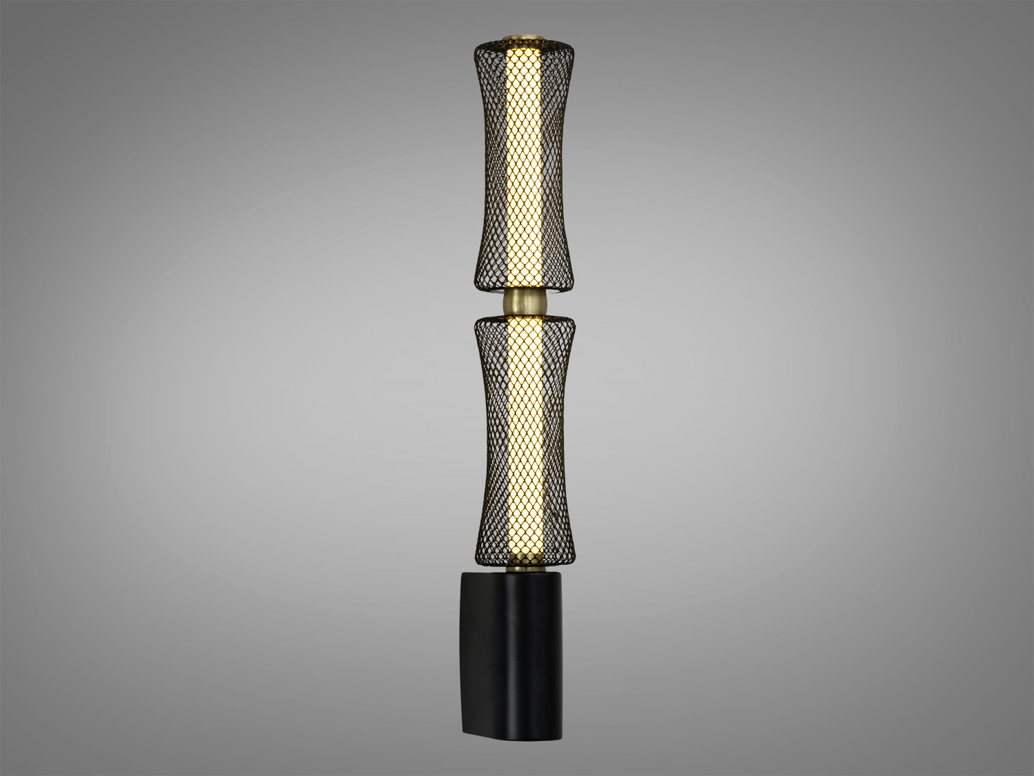 Настінний світильник LED у стилі мінімалізм поєднує сучасний дизайн та функціональність. Чорний корпус із трьома металевими сітчастими абажурами створює унікальну гру світла і тіні, додаючи інтер’єру індустріальної нотки.