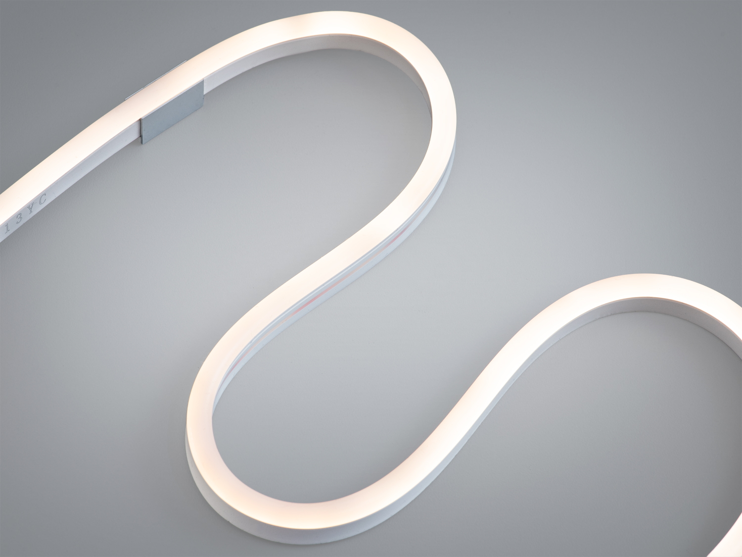 - Силіконова гнучкість — профіль м’яко згинається, допомагає формувати дуги та радіуси без зламів. Під час встановлення варто дотримуватися мінімального радіуса згину, рекомендованого для обраної стрічки.