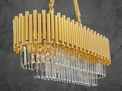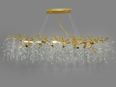 Ефектна кришталева люстра витягнутої форми для зали, колір золото