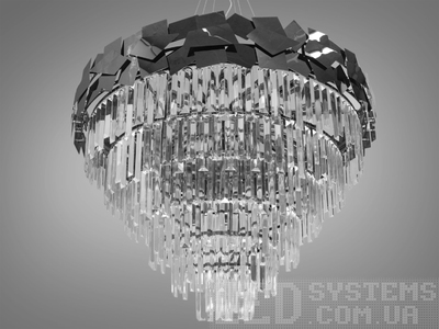 Елітна кришталева LED люстра "Люксовий Каскад", колір хром, 170W на 24м2