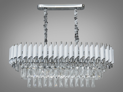 Овальна кришталева люстра-підвіс для зали, колір білий+хром