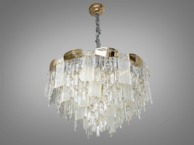 Підвісна скляна люстра для вітальні, колір хром, на 9 ламп