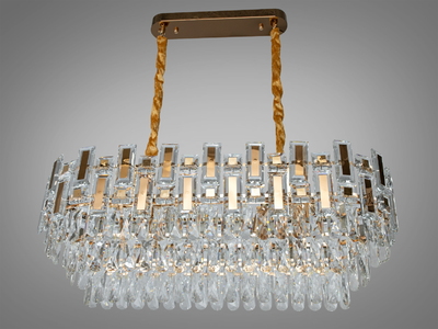 Дизайнерська кришталева люстра овальної форми на кухню, колір золото