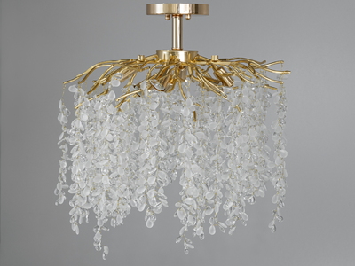Вишукана кришталева люстра "Гліцинія" витягнутої форм у спальню, колір золото