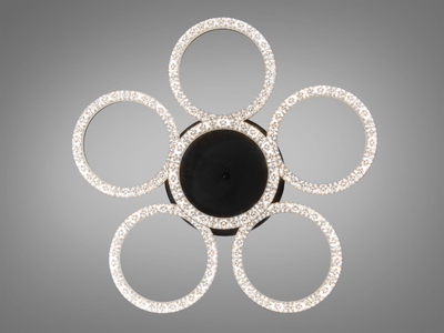 Люстра кільця LED чорна 6 світлодіодних кілець з кришталевими вставками