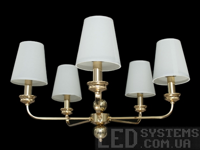Сучасна люстра з абажурами для зали, колір золото, на 5 ламп