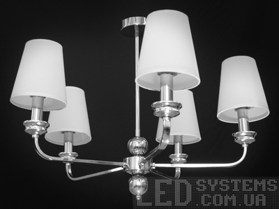 Стильна люстра з абажурами у вітальню, колір хром, на 5 ламп