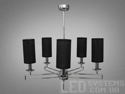 Стильна люстра у вітальню з чорними абажурами, колір хром, на 5 ламп
