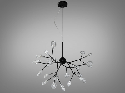 Лаконічна люстра "Світлячок" у вітальню, колір чорний, 36 ламп