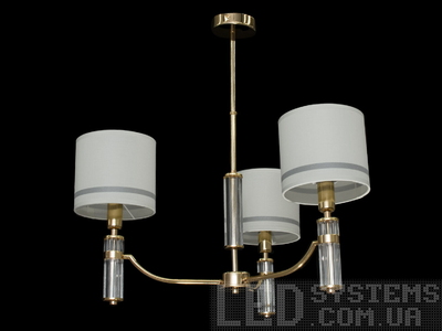 Сучасна люстра з абажурами на 3 лампи в спальню, колір золото