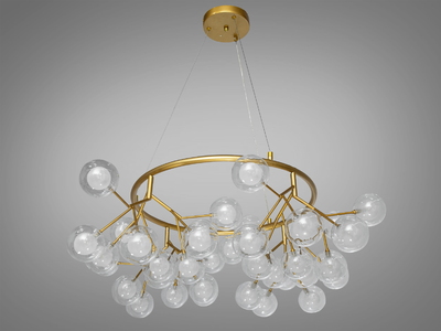 Люстра "Світлячок" у стилі "Скандинавський лофт", колір золото сатин, 45 ламп