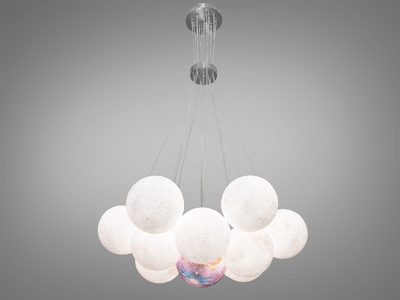Дизайнерська люстра "Планети" для кафе, колір хром, на 13 ламп