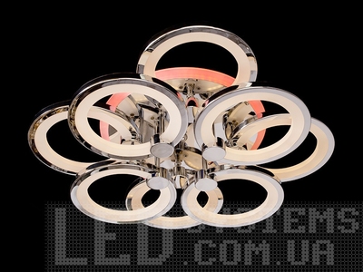 LED-люстра в спальню з колами та підсвічуванням, колір хром, 110W на 16м2