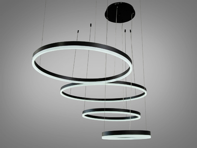 Сучасна світлодіодна люстра кільця для зали, колір чорний, 175W на 25м2