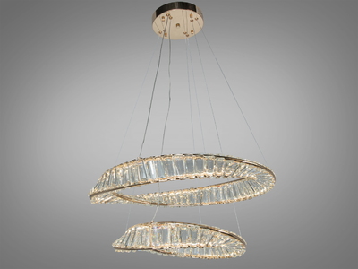Світлодіодна люстра LED підвісна D8812 2 кільця золото 86 Вт кришталь