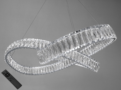 Стильна кришталева LED люстра для залу з пультом, колір хром, 180W на 26м2