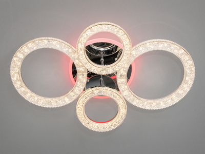 (арт: 2205/4+1WH LED 3color dimmer)Вишукана LED люстра у спальню з пультом, колір білий, 110W на 14м2