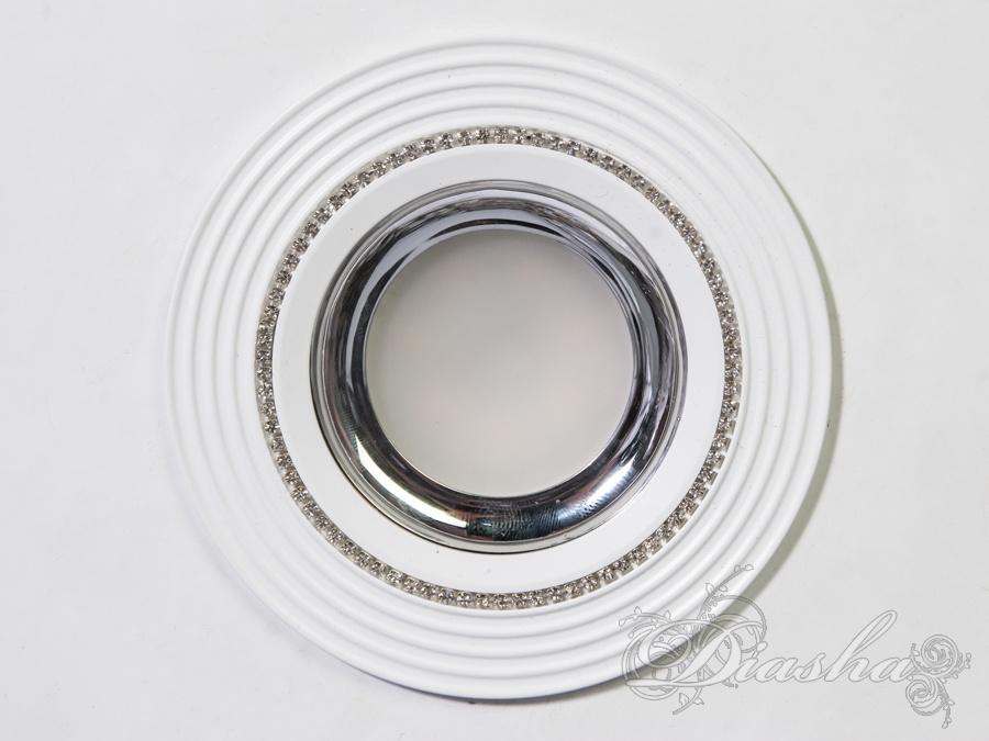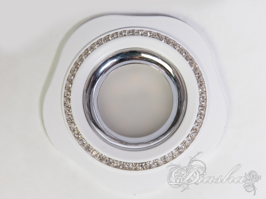 Білий металічний корпус світильника поєднується з елегантною кристальною окантовкою, що надає інтер′єру нотки розкоші. Його овальна форма органічно вписується в сучасний стиль, роблячи простір виразним і оригінальним.