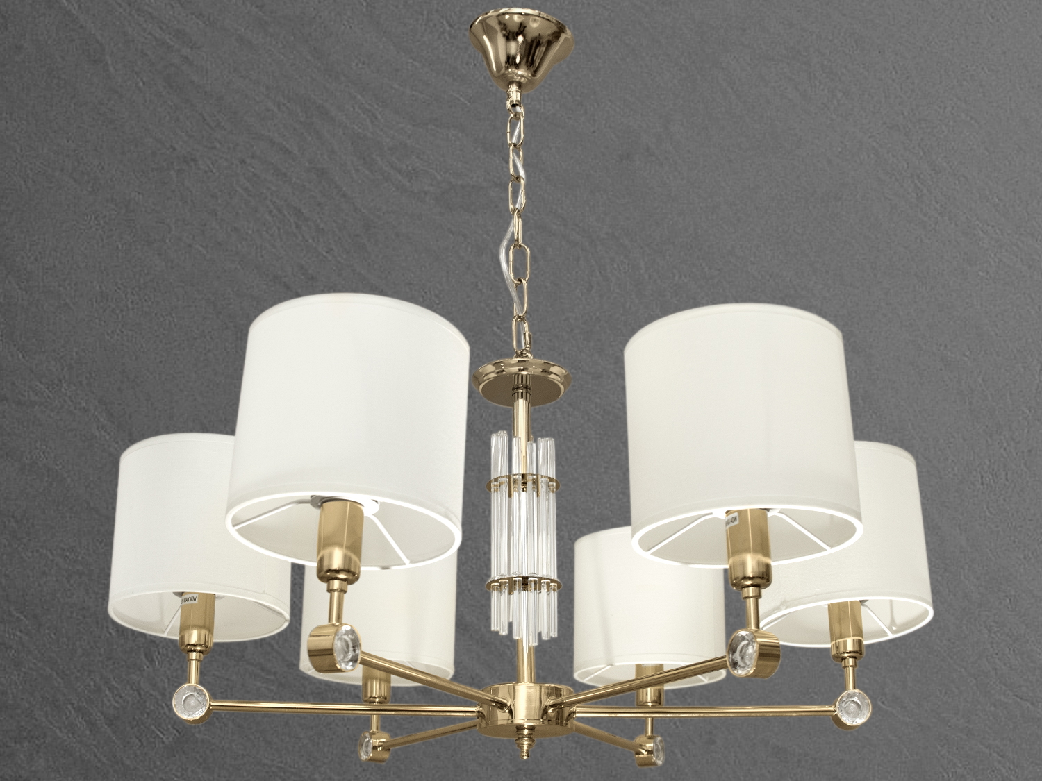 Класична люстра з абажурами у вітальню, колір золото, на 6 ламп
