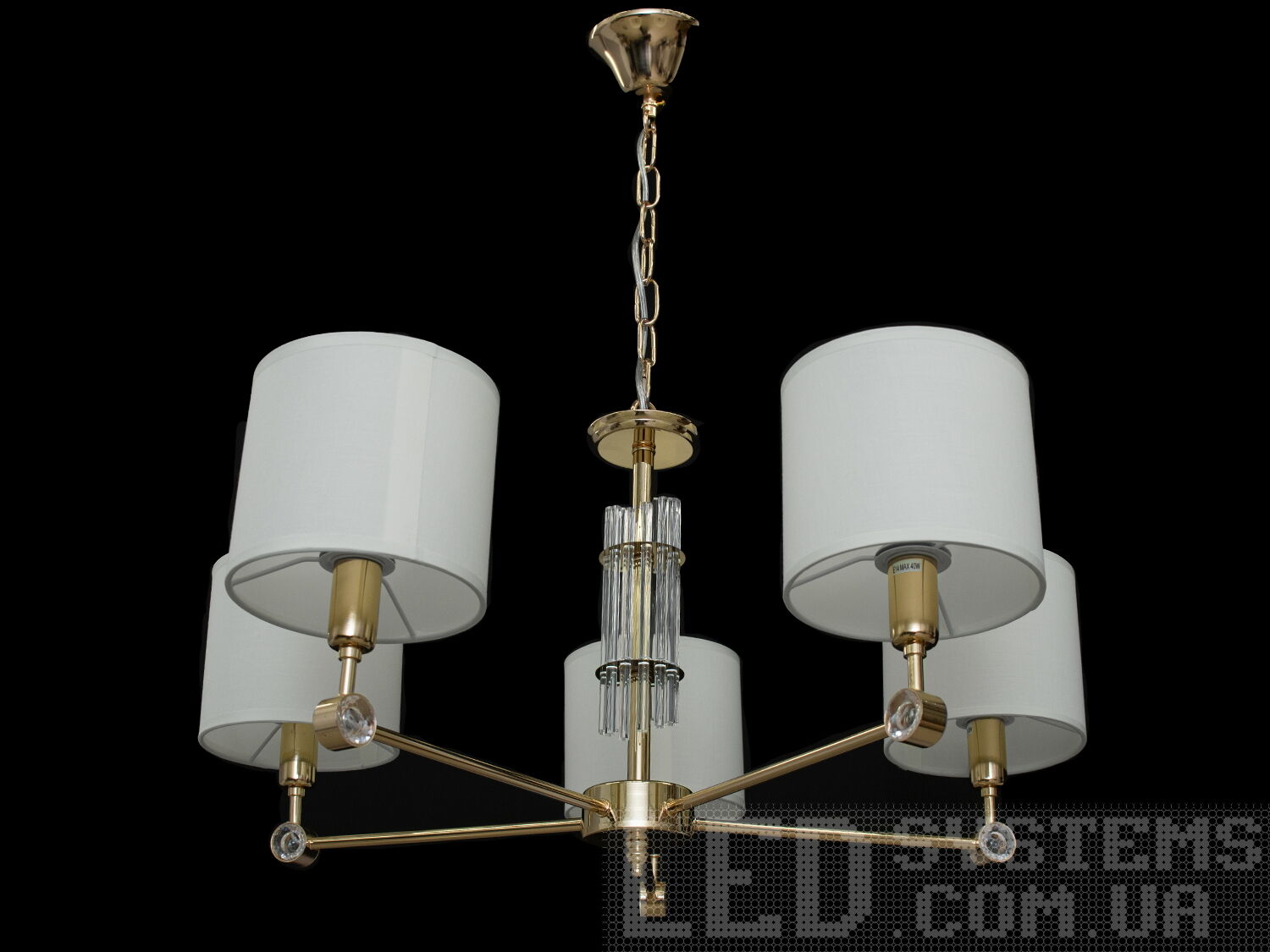 Люстра з абажурами на 5 ламп у стилі сучасна класика, колір золото