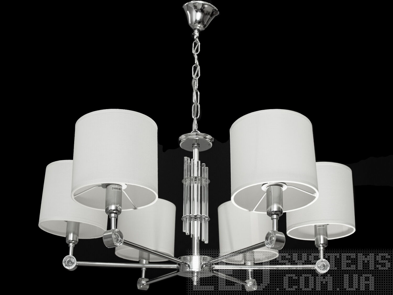 Витончена люстра з абажурами на 5 ламп у спальню, колір хром