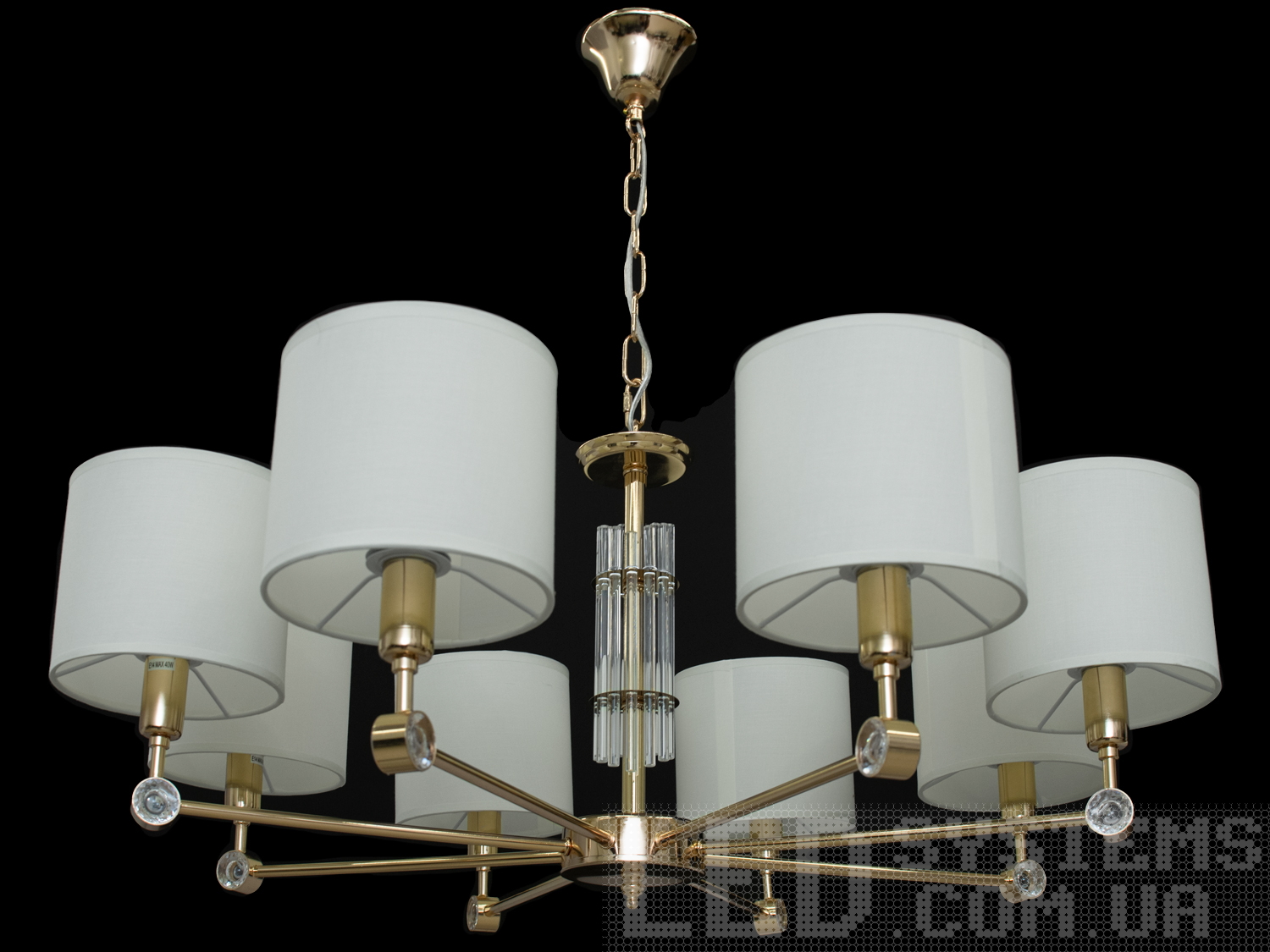 Сучасна люстра у вітальню з абажурами, колір золото, на 8 ламп