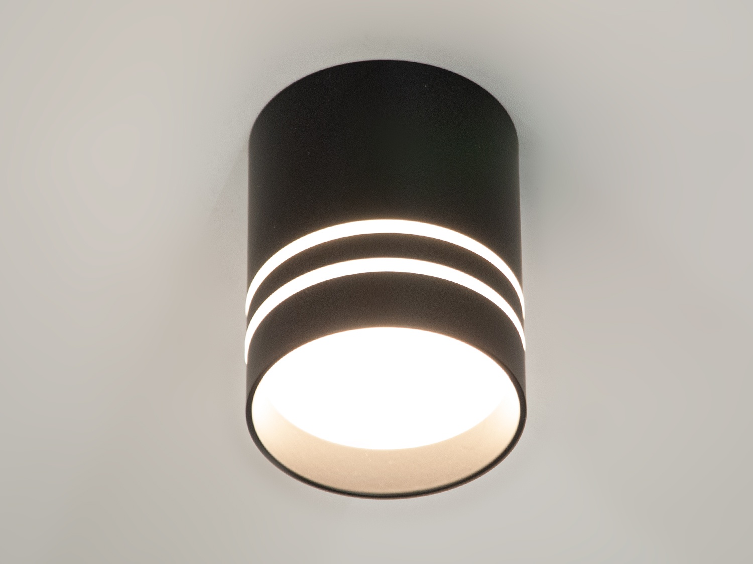 Циліндричний накладний точковий світильник на гіпсокартонну стелю