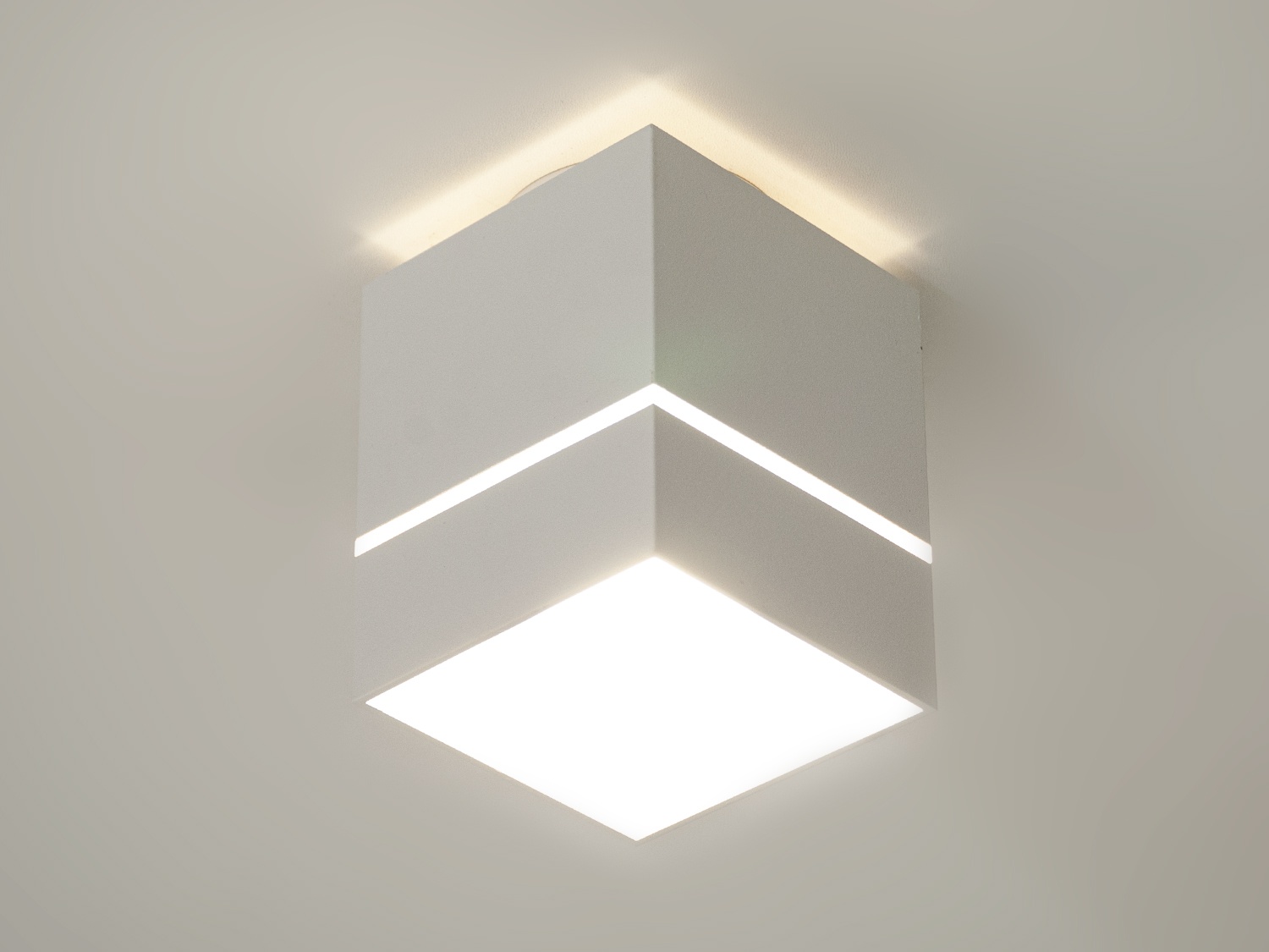 Накладний точковий світлодіодний світильник під натяжний потолок потужністю 7 Вт від ТМ "Діаша" із СОВ технологією. Світильник відрізняється стриманою кубічною формою, пофарбованою в глибокий чорний колір, який надає виробу вишуканості та сучасного стилю. Особливість дизайну цього світильника полягає у шахтному заглибленні освітлювального елемента, що мінімізує візуальний дискомфорт від прямого світла, а також в тонкості підсвічування по периметру, що створює ефект легкості та плавності в інтер'єрі при вмиканні.