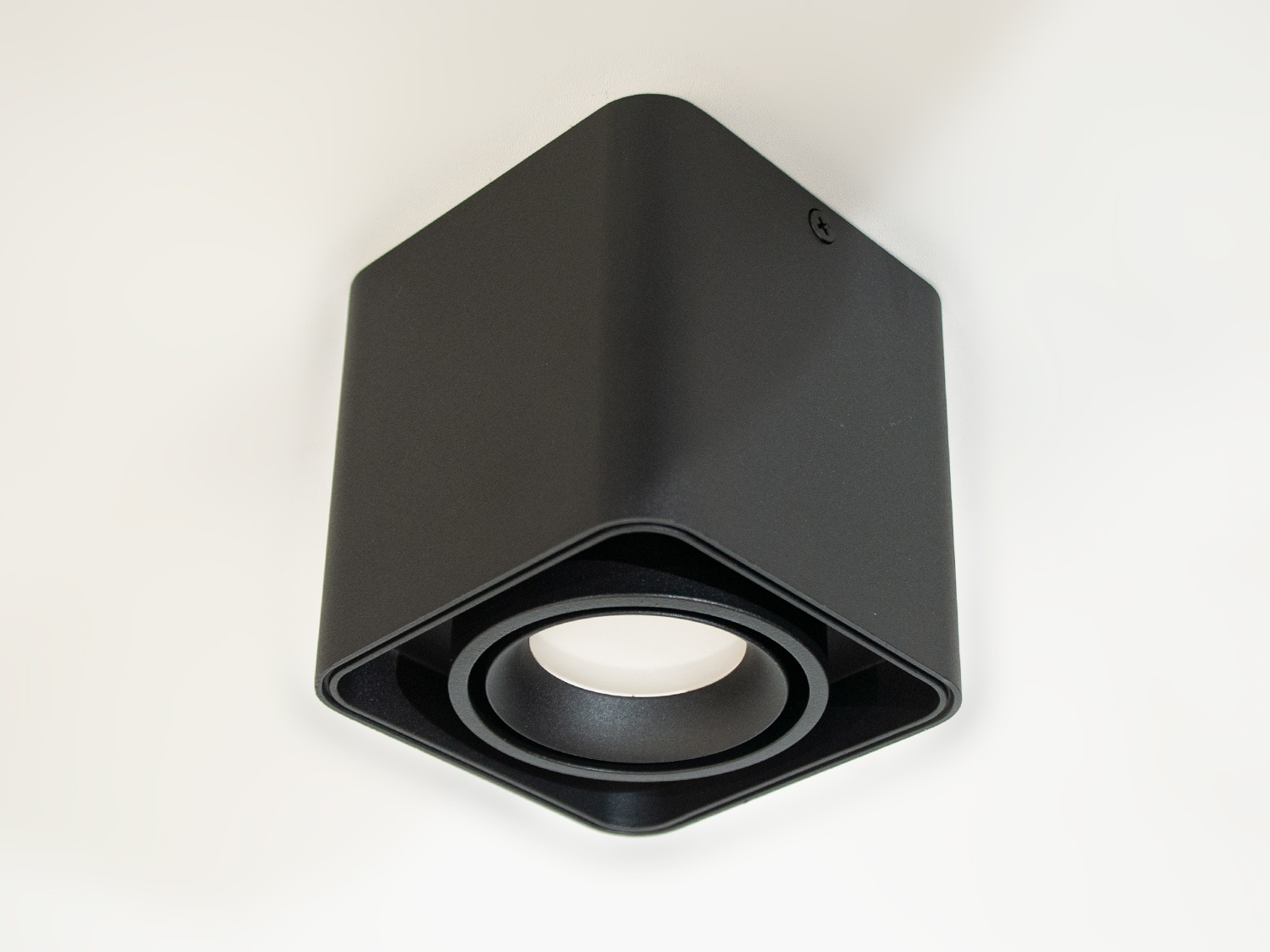 Накладний точковий поворотний світильник на натяжну стелю від ТМ "Діаша". Цей світильник виконаний у стриманих білому кольорі, що робить його вишуканим доповненням до сучасного інтер'єру. Конструкція світильника складається з кубічної основи з заокругленими краями та частини з обертовим механізмом, який утримує світлодіодну лампу GU10. Світлодіодна лампа GU10 є широко відомою завдяки своїй компактності, високій яскравості та енергоефективності. Обертовий елемент дозволяє користувачу налаштувати напрямок світла згідно з потребами освітлення приміщення.