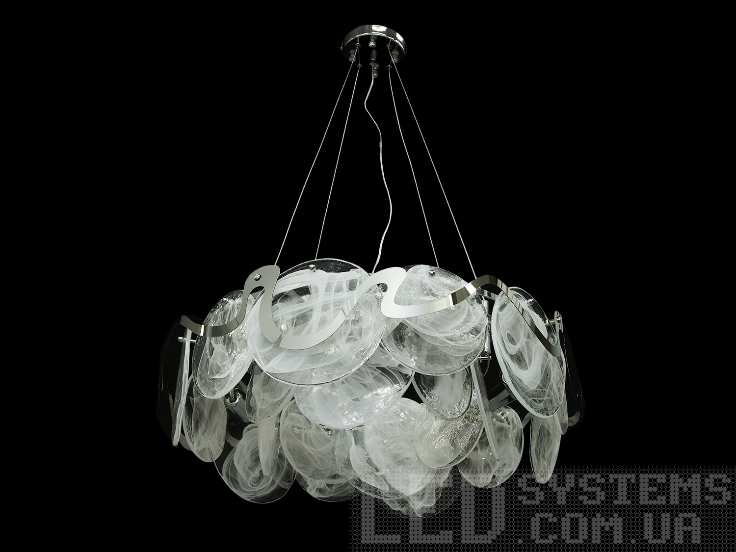 Скляна люстра підвіс з круглими елементами, колір хром, на 10 ламп
