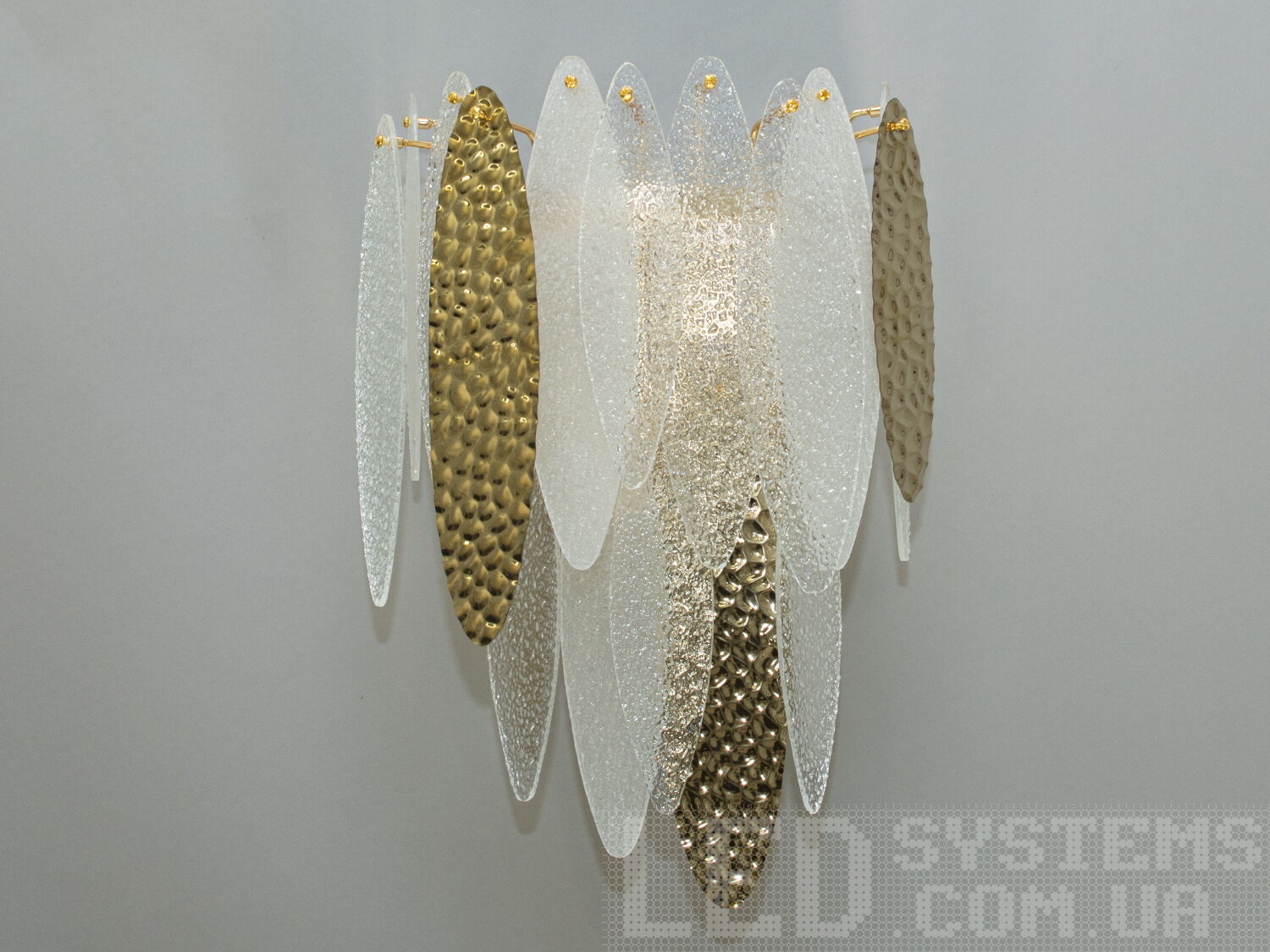 Сучасна люстра підвіс зі скляними пелюстками, колір золото