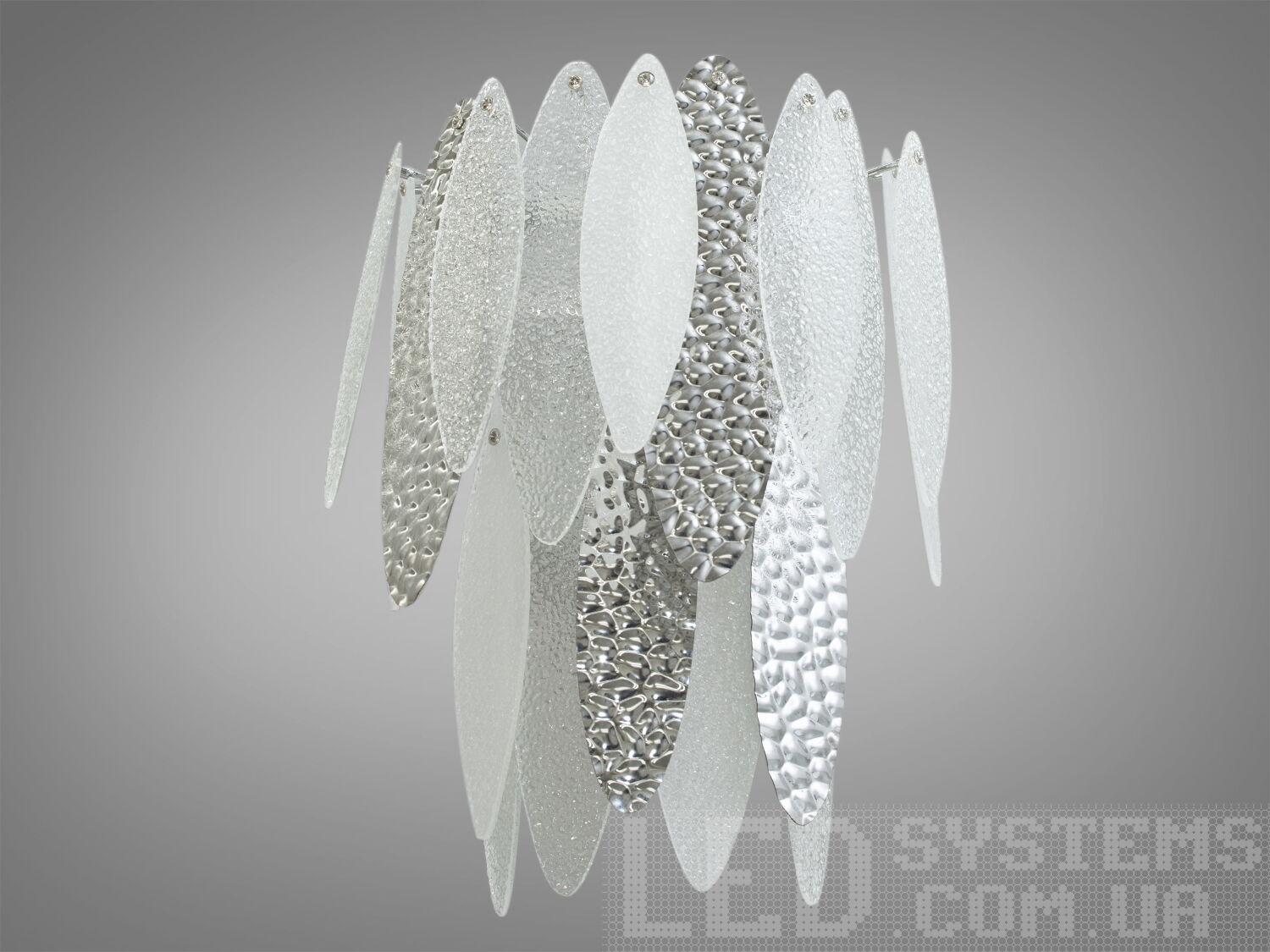 Незвичайна люстра підвіс зі скляними пелюстками, колір хром