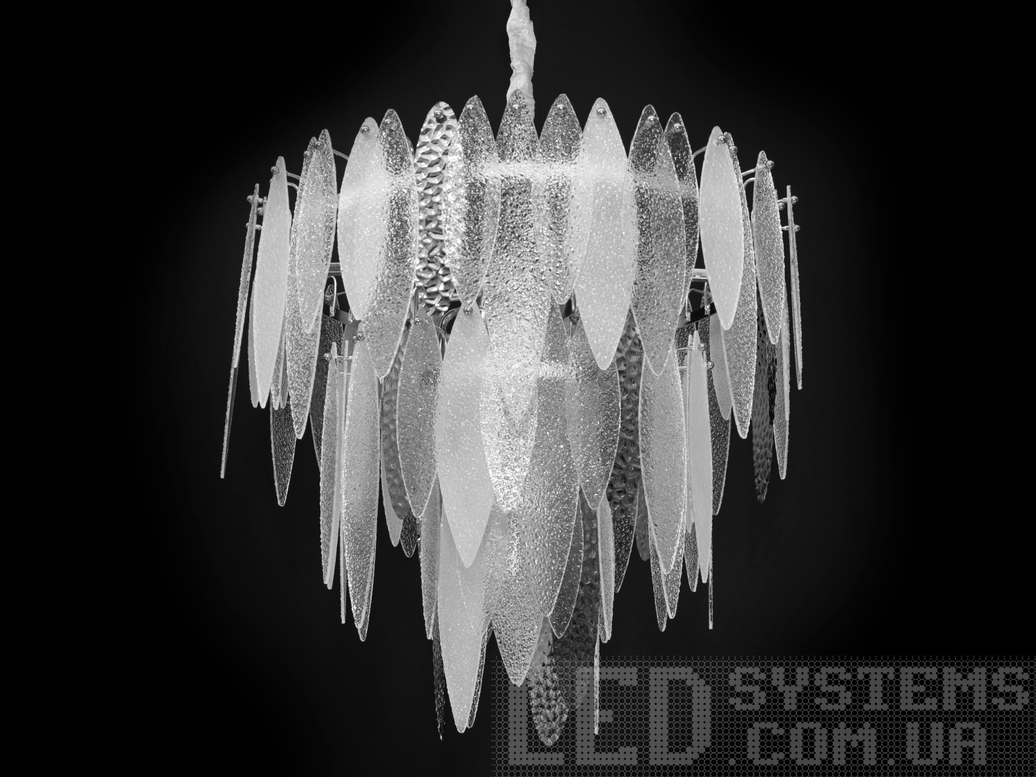 На неї можна дивитися під будь-яким кутом, і не дивлячись на легкість конструкції люстри, ви завжди бачитимете лампи тільки через тоноване скло.