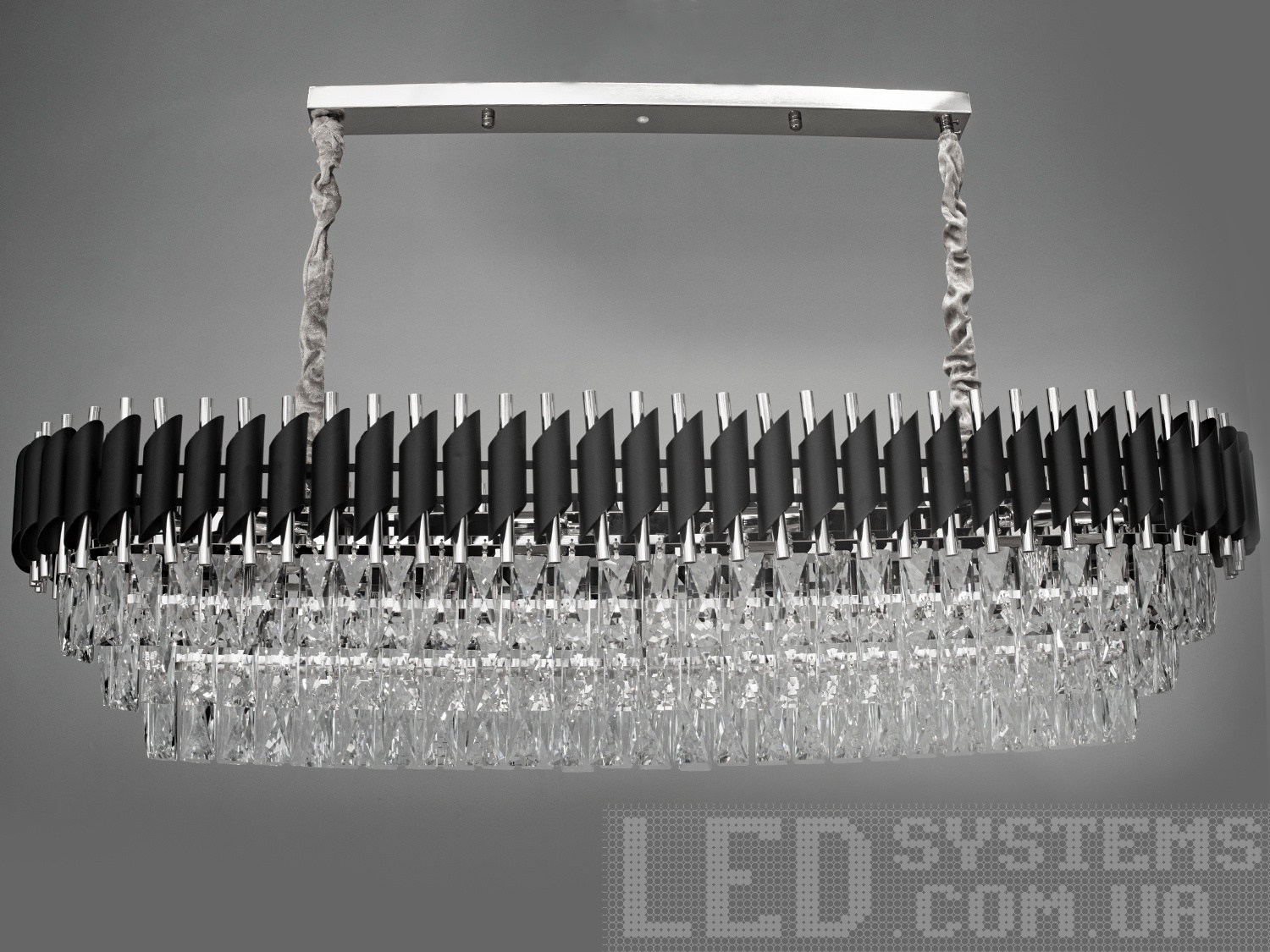 Современная хрустальная люстра овальной формы, цвет черная/хром, на 10 ламп