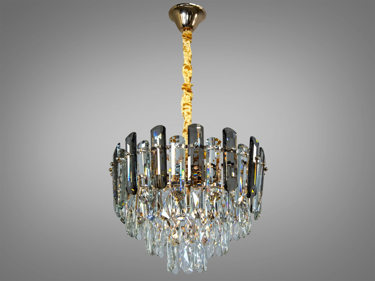 Люстра складається з кількох рядів ретельно відполірованих кришталів, що відбивають світло, створюючи блискуче та живе освітлення у всьому просторі. Кожен кришталь відточений до досконалості, щоб максимізувати гру світла та тіні, надаючи інтер'єру неперевершений шарм та елегантність.