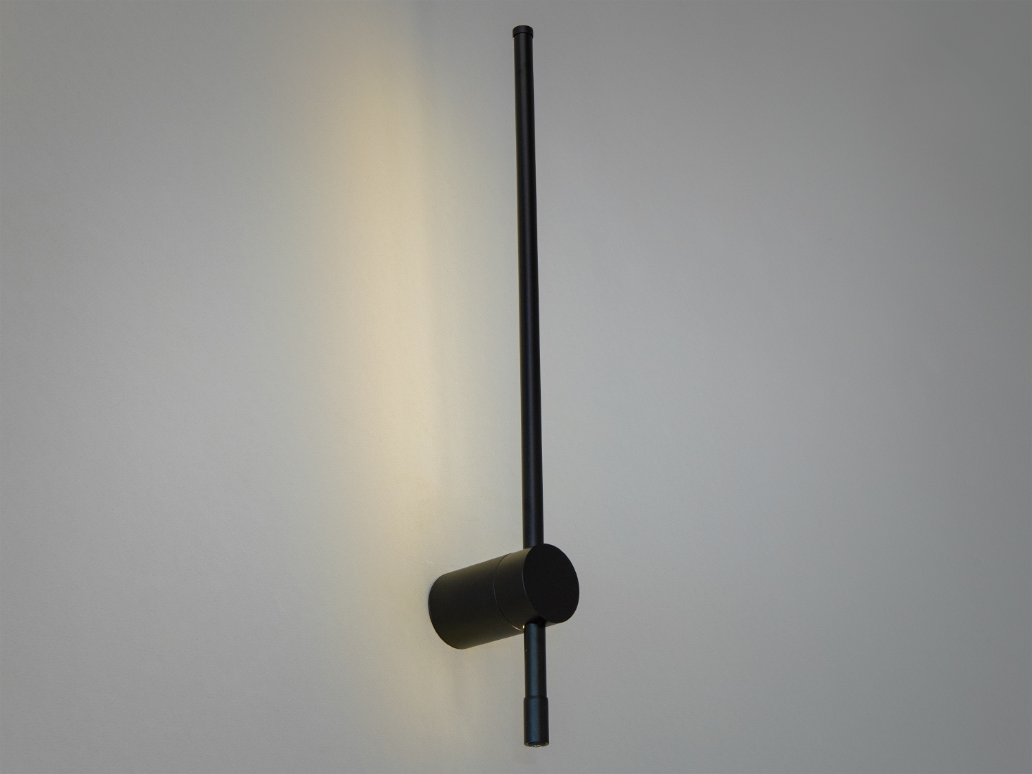 Дизайнерське світлодіодне бра в кабінет з унікальною вертикальною композицією - це справжній об′єкт сучасного мистецтва, який поєднує строгу геометрію і функціональність. Його витягнута форма з тонким металевим стрижнем і акцентом у вигляді акуратного циліндричного елемента здається ширяє в просторі. Лаконічне матове покриття чорного кольору додає дизайну глибини та універсальності, дозволяючи гармонійно вписуватися в різні стилі інтер′єру: від мінімалізму та лофта до хай-тек та скандинавського стилю.