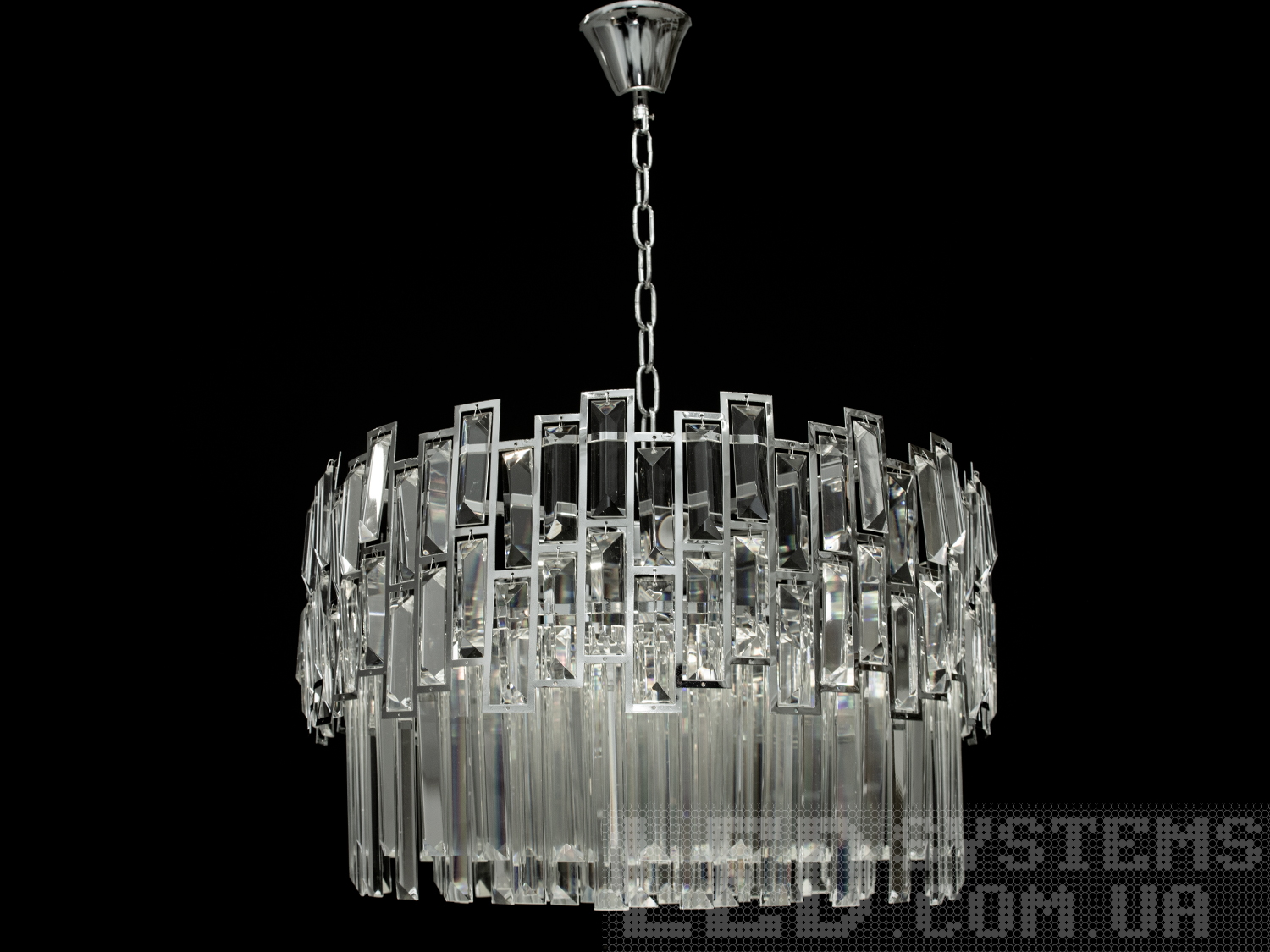 Люстра спеціально розрахована так, що максимум яскравого світла потрапить на стіл, а інший простір приміщення наповниться м'яким світлом розсіяним кришталевими підвісками.