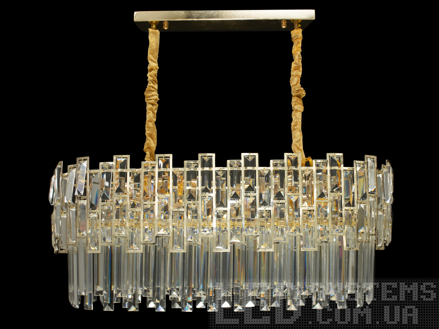 Стильна кришталева люстра-підвіс у спальню, колір золото, на 7 ламп