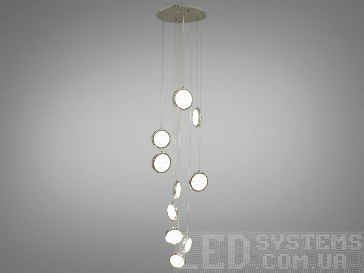 Незвичайна каскадна лід люстра для холу на 18 підвісів у сучасному виконанні добре виглядатиме в інтер'єрі вітальні або зали, ресторану або великого сходового холу.