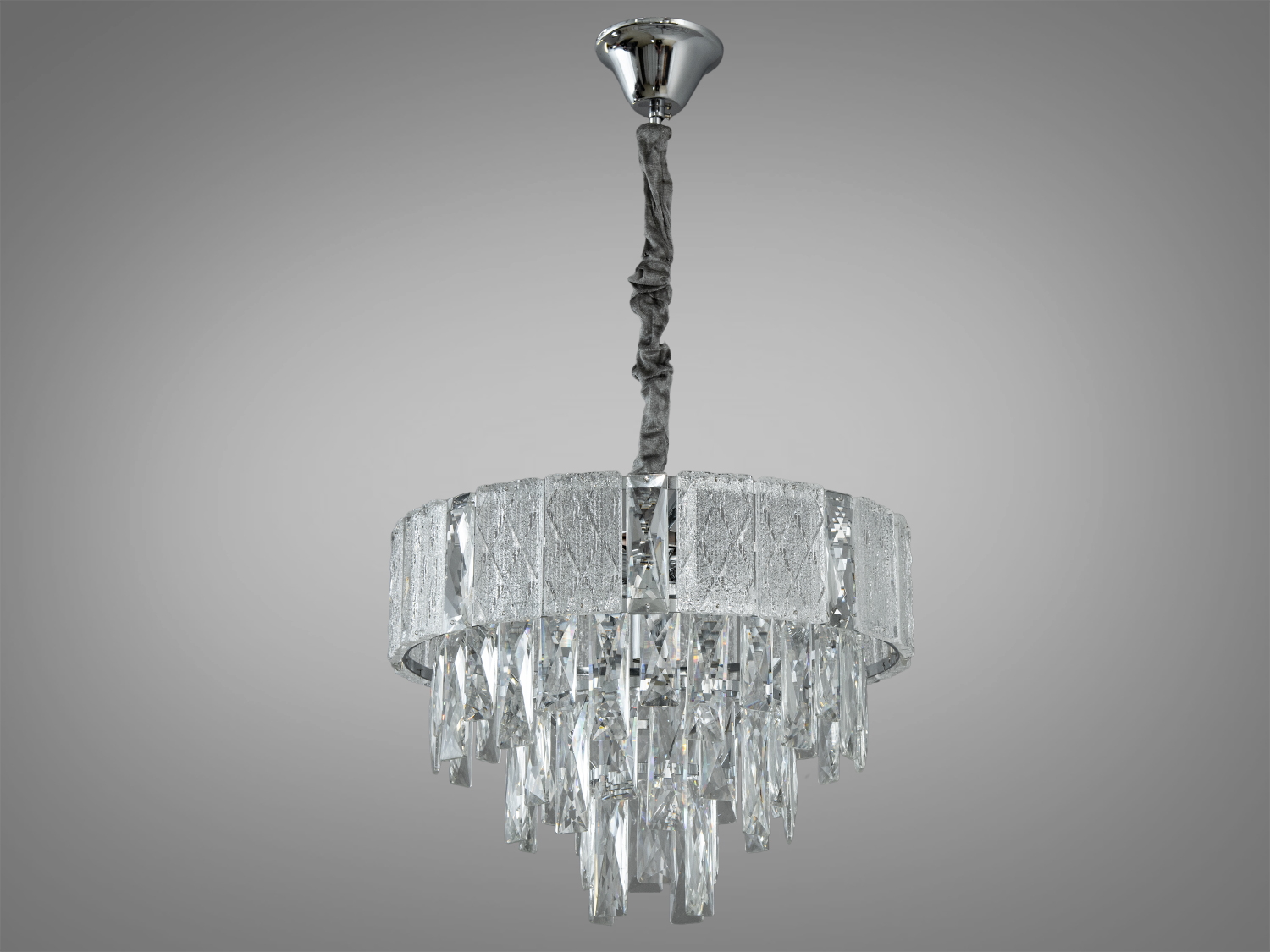 Особливу увагу привертає ланцюг підвісу, дбайливо вкритий м'яким оксамитовим чохлом - деталь, що надає люстру аристократичну нотку та візуальну теплоту. Така люстра не просто висвітлить приміщення, а наповнить його грою світла, глибиною та вишуканістю.