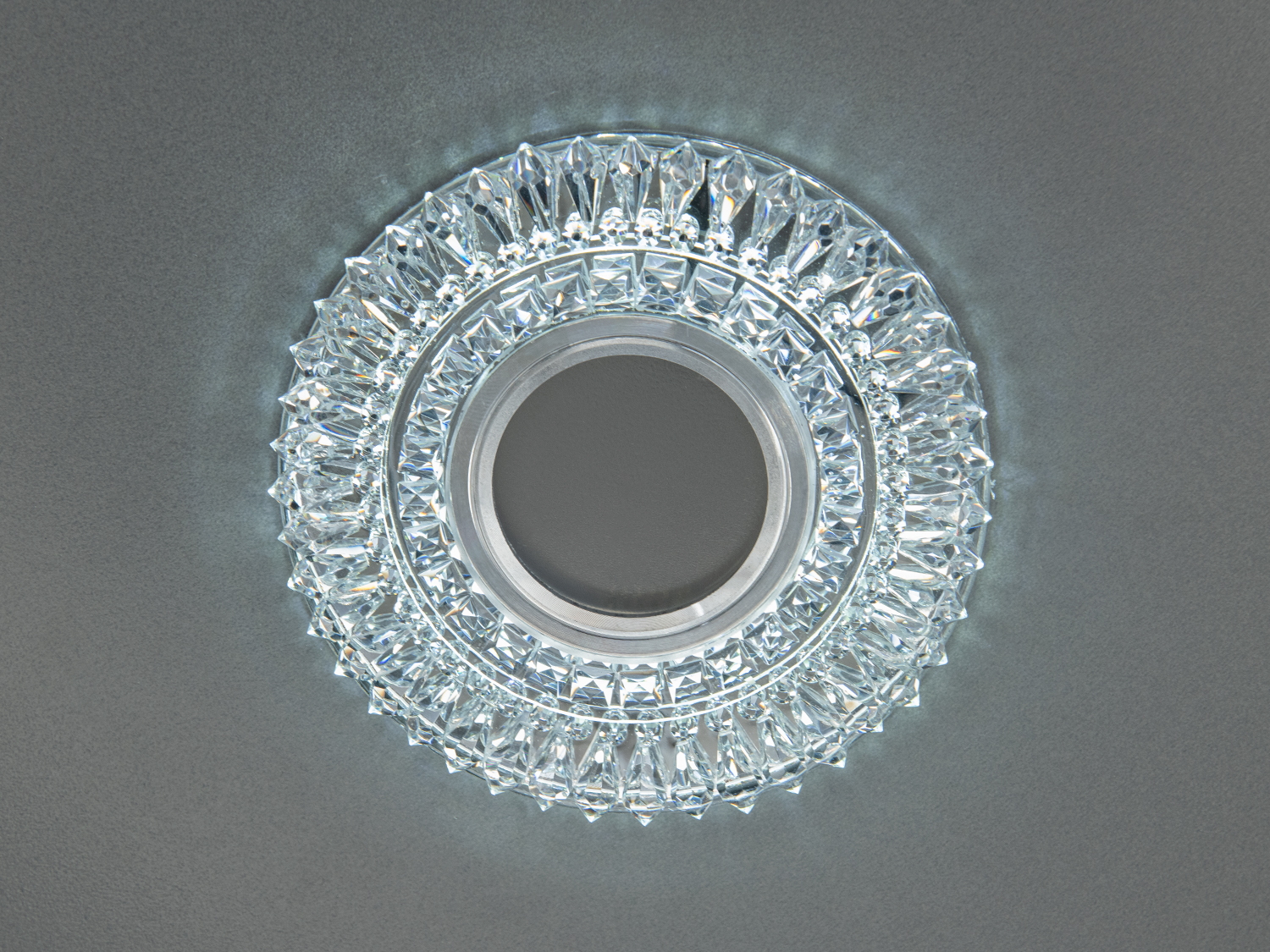 Елегантний точковий світильник із вбудованим led підсвічуванням із вишуканим кришталевим візерунком стане не просто джерелом світла, а справжньою окрасою інтер'єру. Його багатогранний дизайн створює чудову гру відображень, наповнюючи простір відблисками та мерехтливими відтінками.