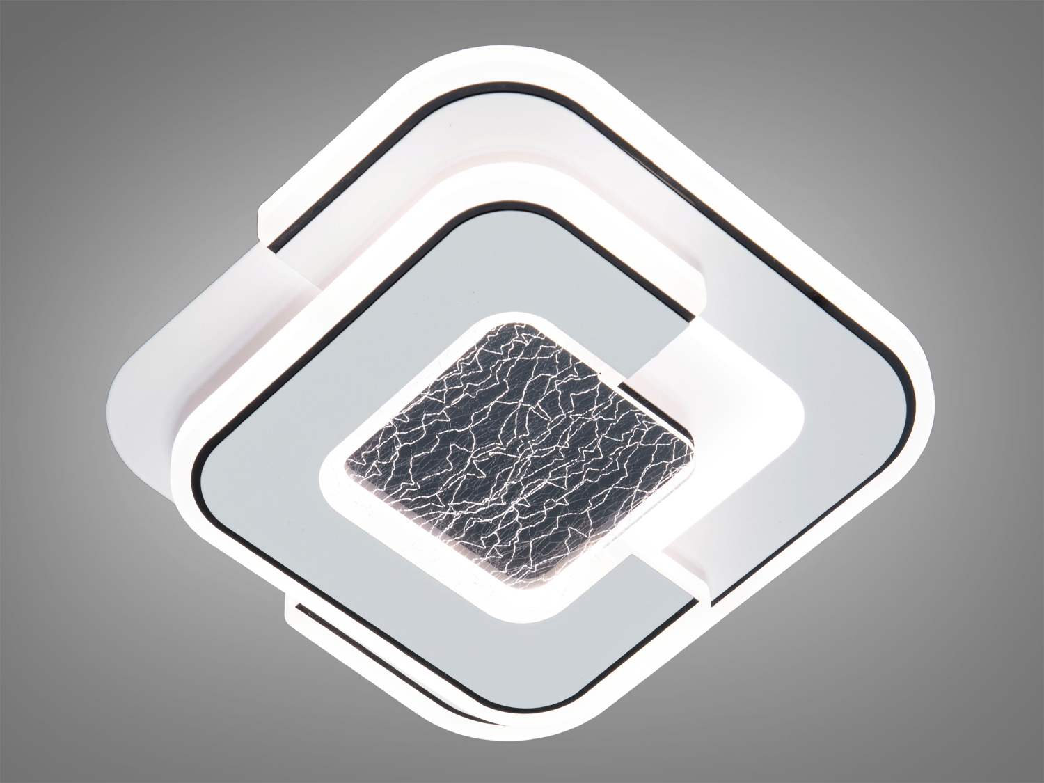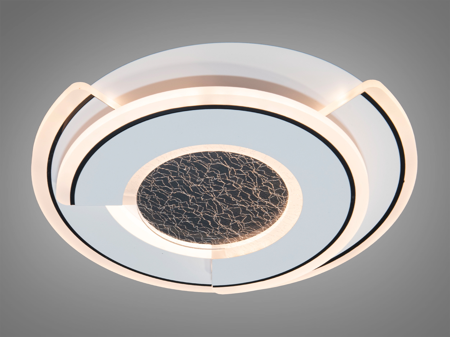 Світильник має трикутну форму з текстурованою центральною частиною, що нагадує тріщини, додаючи особливого шарму. Біла поверхня з чорними акцентами підкреслює його сучасність.