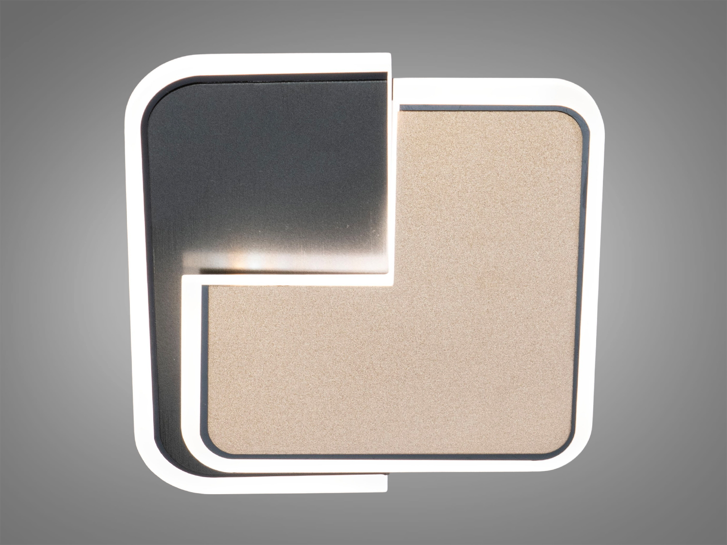 Світильник має квадратну форму з сірим і золотим покриттям, що підкреслює його стильний вигляд. Акриловий розсіювач забезпечує рівномірне освітлення, створюючи атмосферу затишку і комфорту.