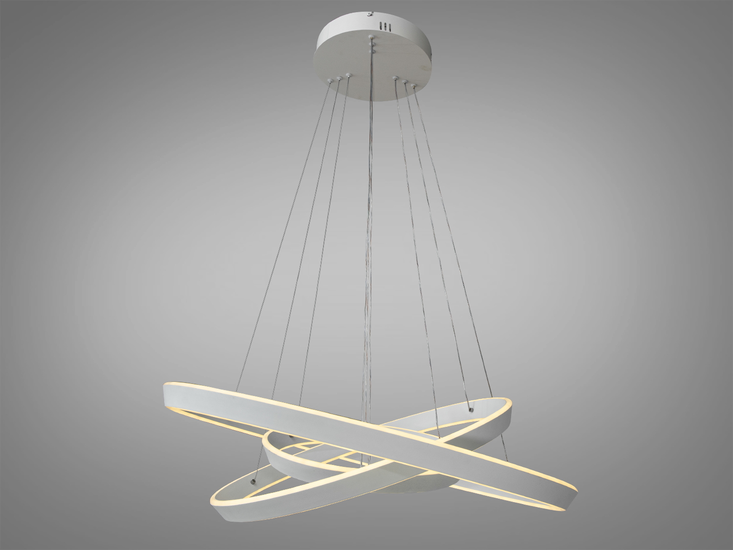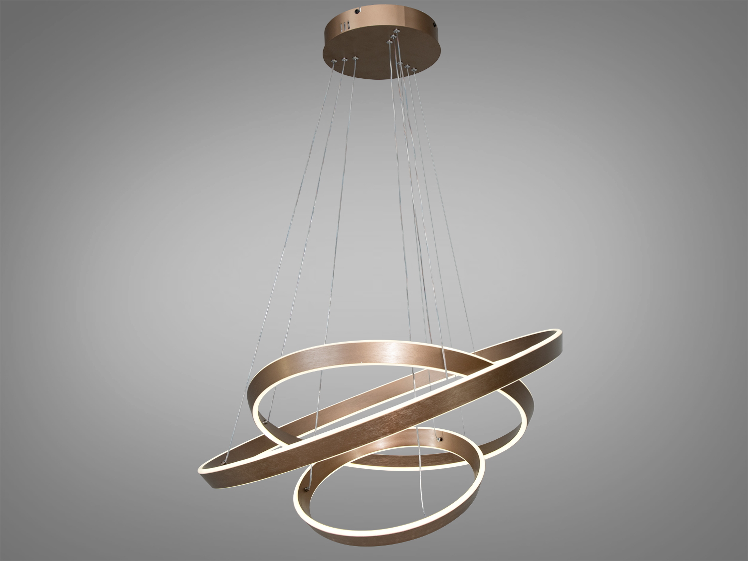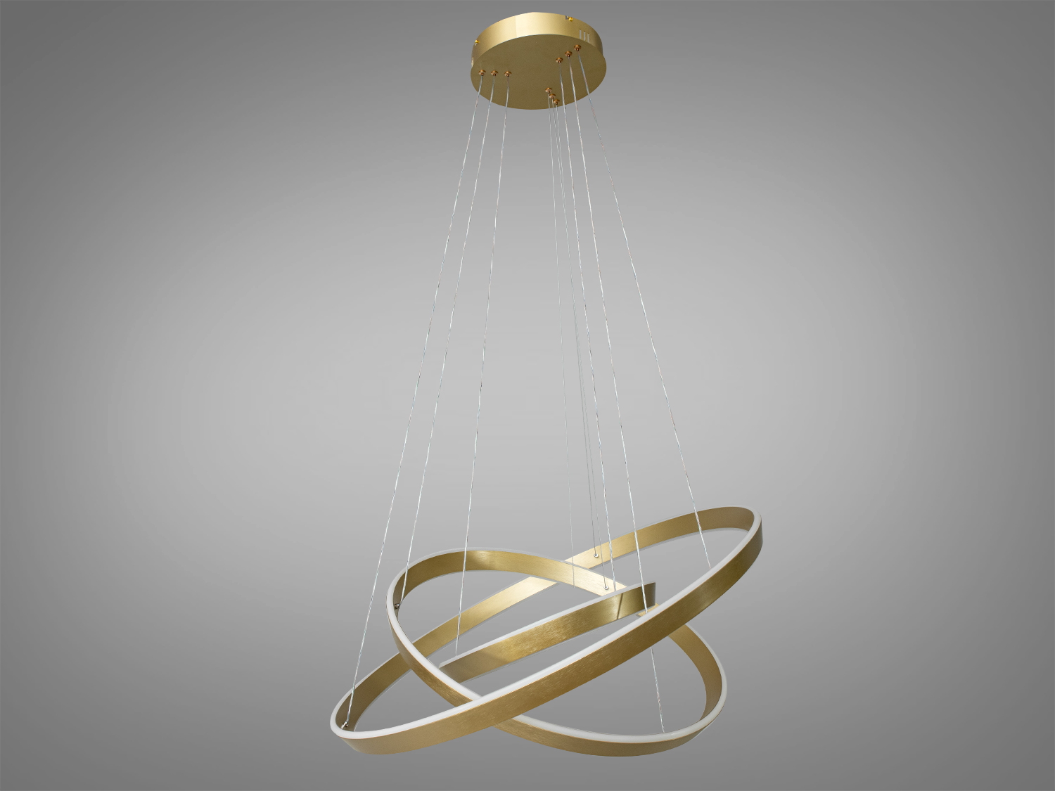 Набір переплетених кілець створює динамічну композицію у просторі, вносячи почуття руху та легкості. Її елегантні кільця роблять її не тільки джерелом світла, а й центральним елементом інтер'єру. Оснащена сучасними світлодіодами, люстра забезпечує якісне освітлення, використовуючи менше енергії, що робить її економічно вигідною.