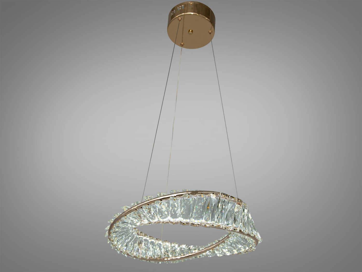Кришталева люстра на підвісних тросах легко інтегрується в будь-який дизайн простору, доповнюючи його яскравістю світла і блиском кришталів. Її конструкція, що нагадує стрічку Мебіуса, роблять цю люстру справжнім витвором мистецтва. Оснащена сучасними світлодіодами, люстра обіцяє довговічність та енергоефективність, зменшуючи витрати на електроенергію та потребу у частій заміні джерел світла.